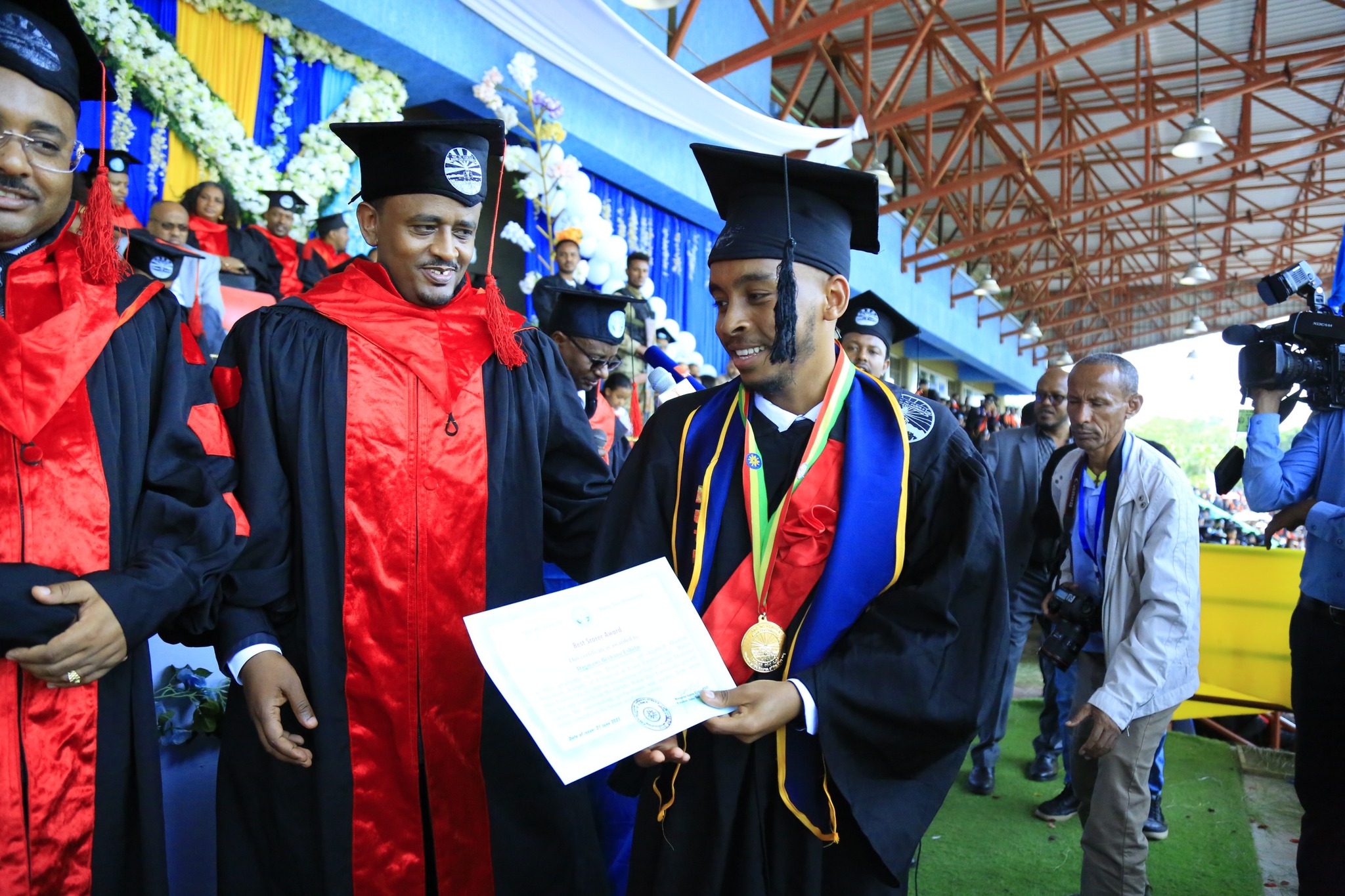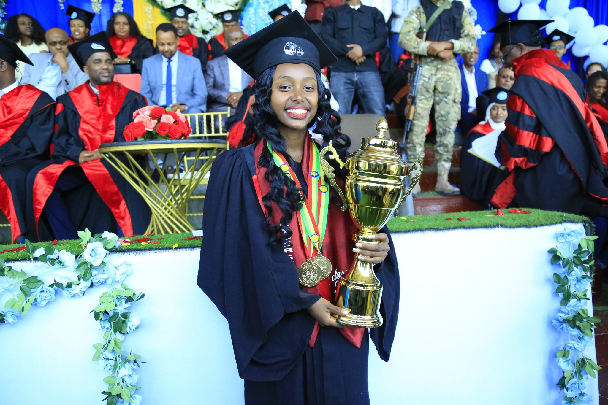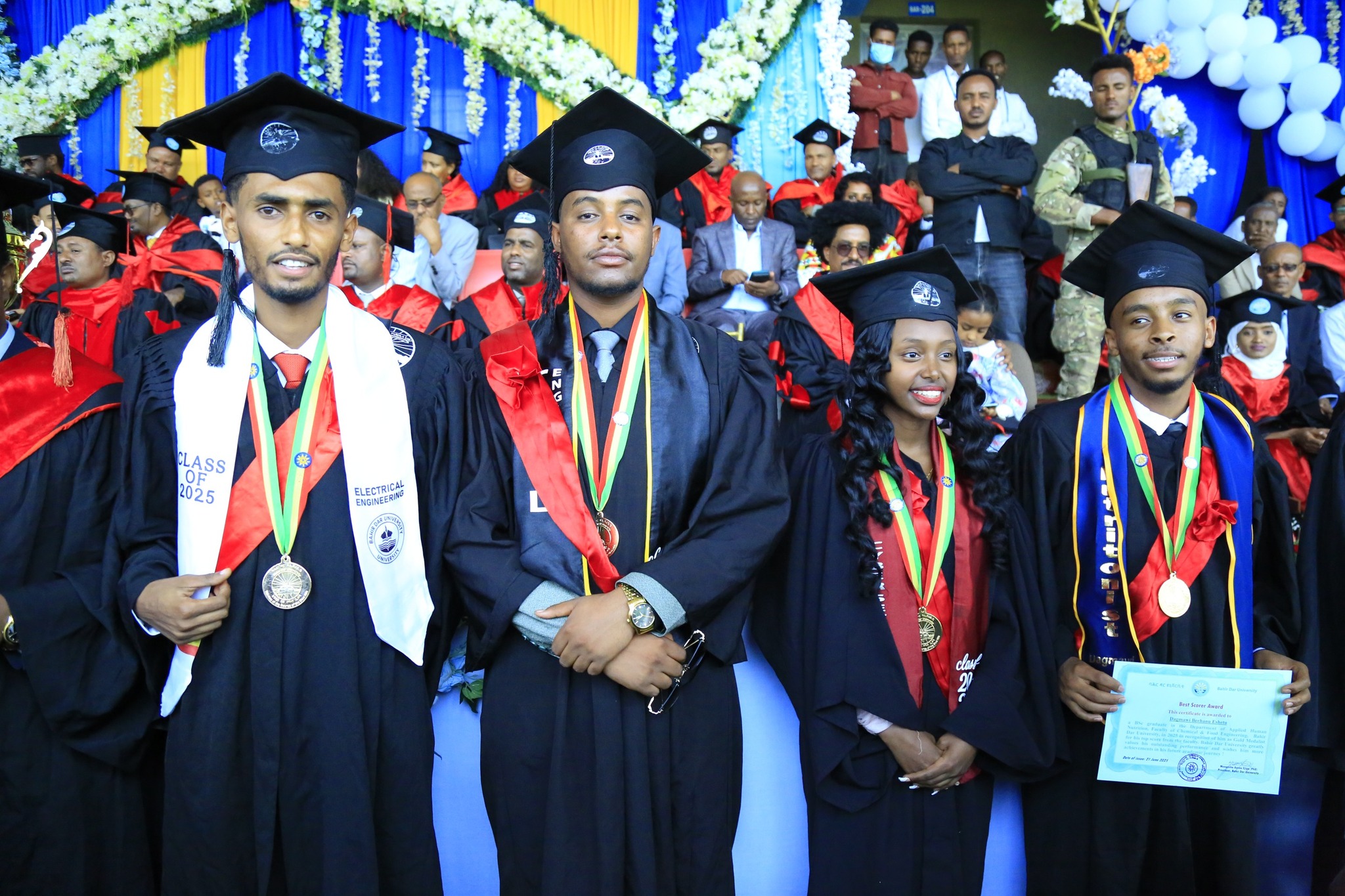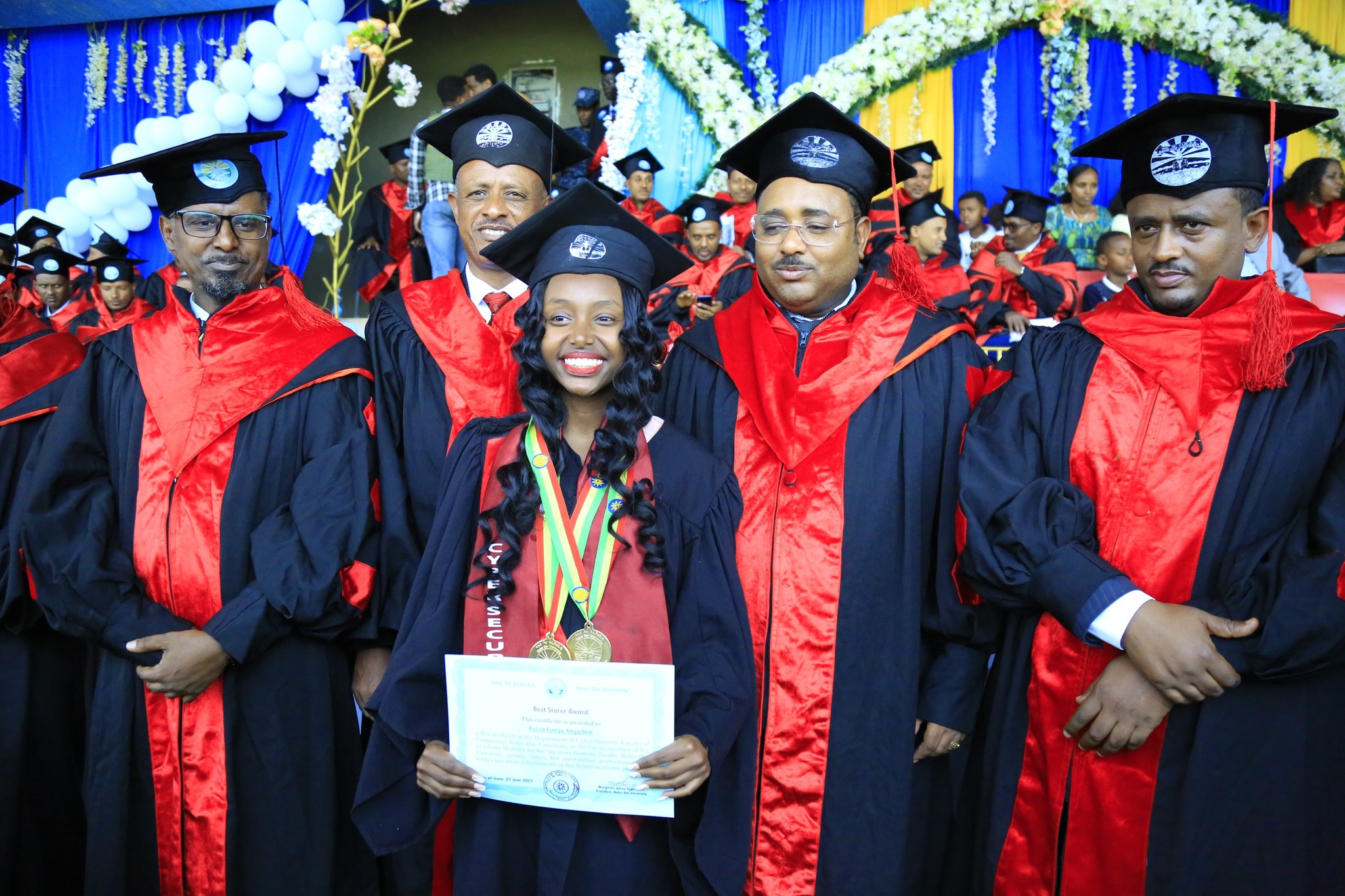 በምረቃ ስነ-ስርዓቱ ላይ ከየፋኩልቲያቸው የላቀ ውጤት ያመጡ ተመራቂ ተማሪዎች የሜዳሊያ ተሸላሚ ሲሆኑ ከአጠቃላይ የኢንስቲትዩቱ እና ከአጠቃላይ የባሕርዳር ዩኒቨርሲቲ ተመራቂ ተማሪወች መካከል የኮምፕዩቲንግ ፋኩልቲ የሳይበር ደህንነት (Cyber Security) ተማሪ የሆነችው ፌቨን ጉርጁ 4 ነጥብ በማምጣት የዋንጫ ተሸላሚ ሆናለች፡፡