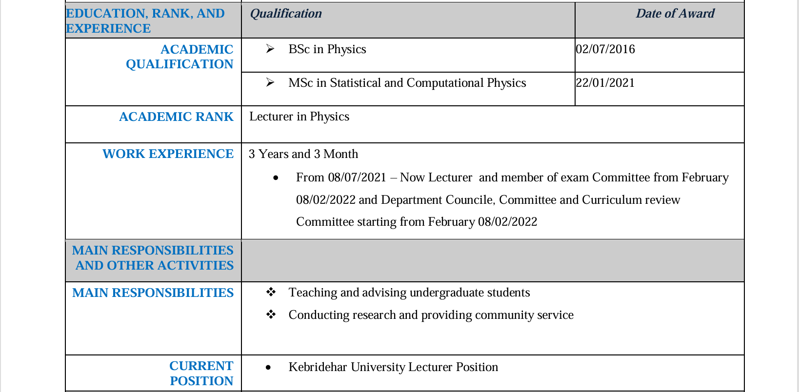 about Tesfaye Shiferaw