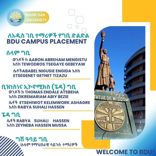 ውድ ተማሪዎች የአንጋፋው ባሕር ዳር ዩኒቨርሲቲ ተማሪ የመሆን እድሉን ስላገኛችሁ እንኳን ደስ አላችሁ!
